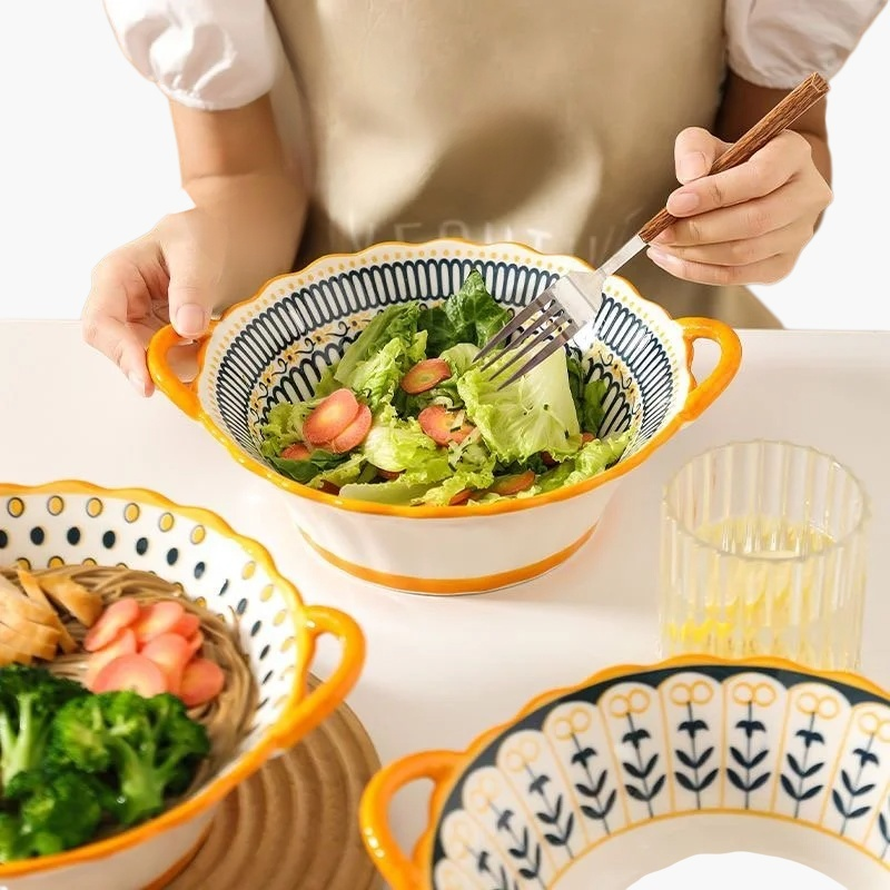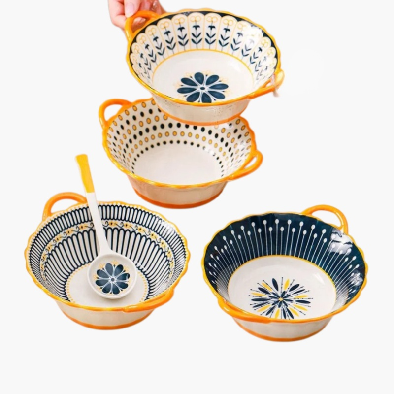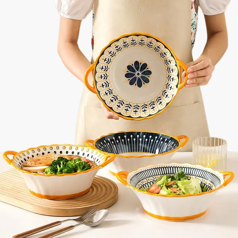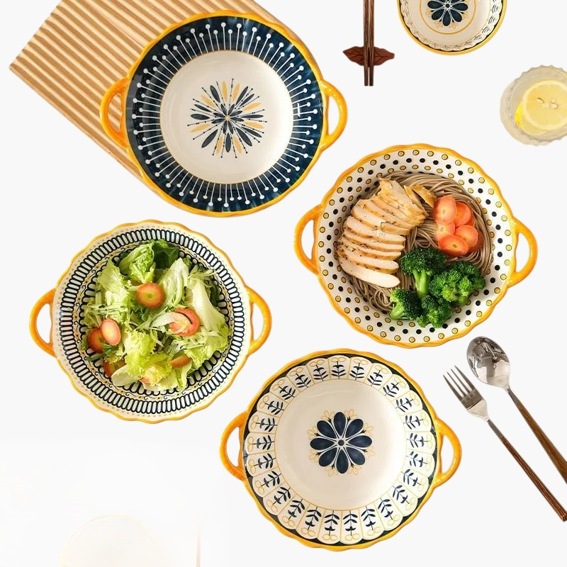 내구성 강한 세라믹 그릇, 접시, 칼 세트. 모던한 디자인과 위생적인 소재. 전자레인지·식기세척기 사용 가능.