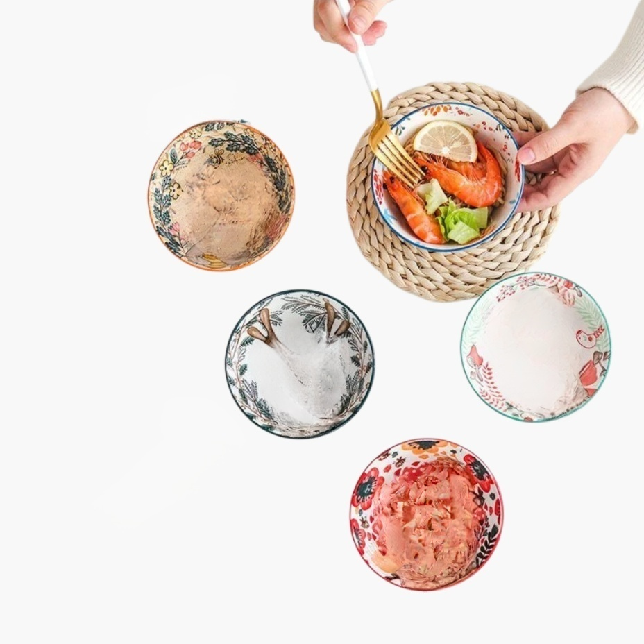 고급 도자기 그릇, 접시, 젓가락 및 식기류 세트로 식탁 분위기 연출, 위생적이고 내구성 우수, 다양한 디자인 선택 가능